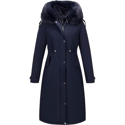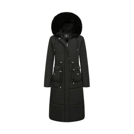 Women’s Long Winter Puffer Coat Waterproof Warm Maxi Down Jacket Faux Fur Removable Hood Parka
