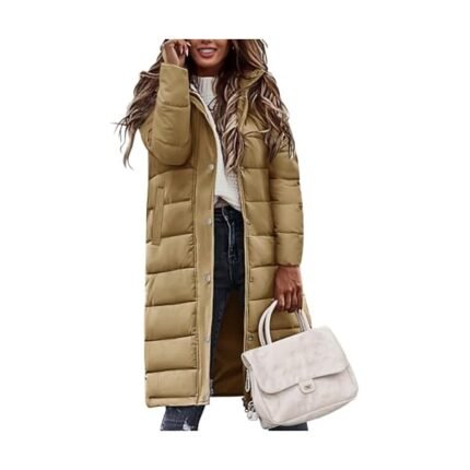 Women Long Quilted Coat Winter Hooded Long Sleeve Button Down Puffer Padded Jacket