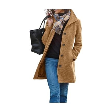 Women’s Winter Wool Blend Pea Coat Single Breasted Stand Collar Casual Trench Coat Overcoat